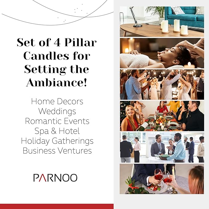 - Light Up Your Life with PARNOO: Experience the indulgent ambiance of the PARNOO pillar candles. Transform every celebratory event, intimate gathering, and relaxing evening into a truly unforgettable moment to cherish.