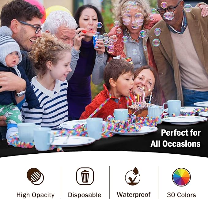 - HIGH OPACITY: covers any table with minimal transparency. Great plastic tablecoth for parties, weddings, holdiay party, thanksgiving dinner, bbq, and any other color themed event.