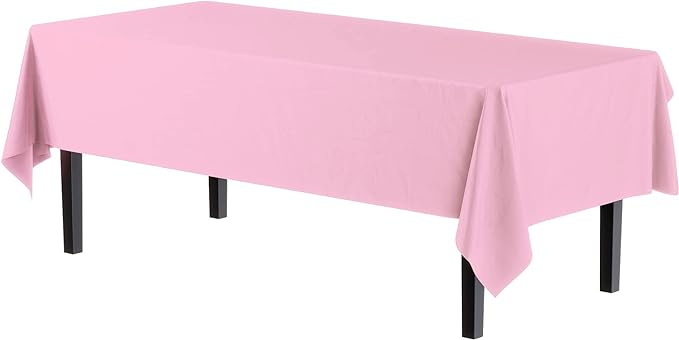 - SIZE: This 54" x 108" Pink Plastic tablecloth will cover any table up to 8 feet.