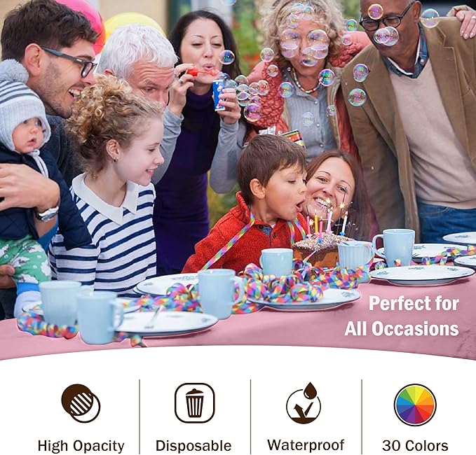 - HIGH OPACITY: covers any table with minimal transparency. Great plastic tablecoth for parties, weddings, holdiay party, thanksgiving dinner, bbq, and any other color themed event.