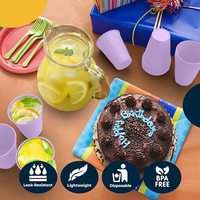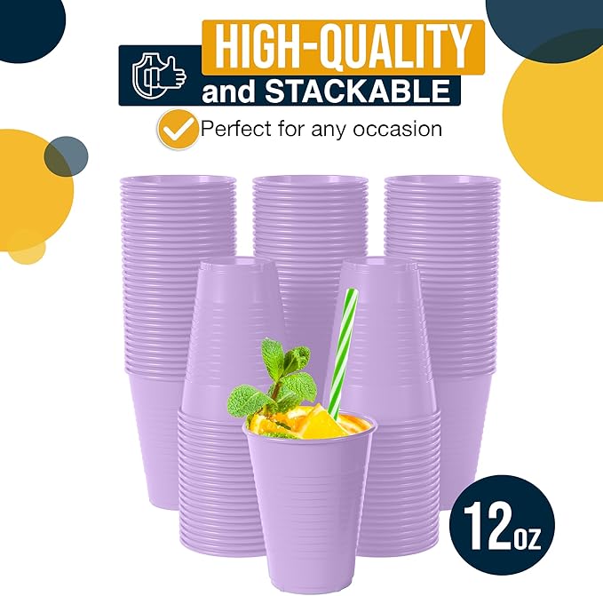 - Convenient: Featuring quality construction and stackable design, these plastic throw away cups are both practical and space-saving, ensuring a hassle-free party experience. Whether you're hosting a fiesta or a casual get-together, our cups colored are the perfect choice for serving drinks
