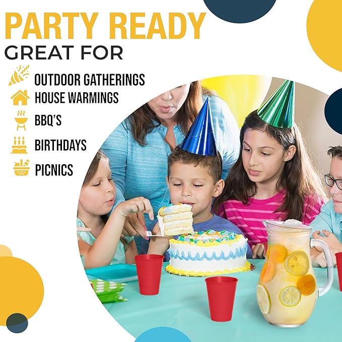 - Convenient: Featuring quality construction and stackable design, these plastic throw away cups are both practical and space-saving, ensuring a hassle-free party experience. Whether you're hosting a fiesta or a casual get-together, our cups colored are the perfect choice for serving drinks