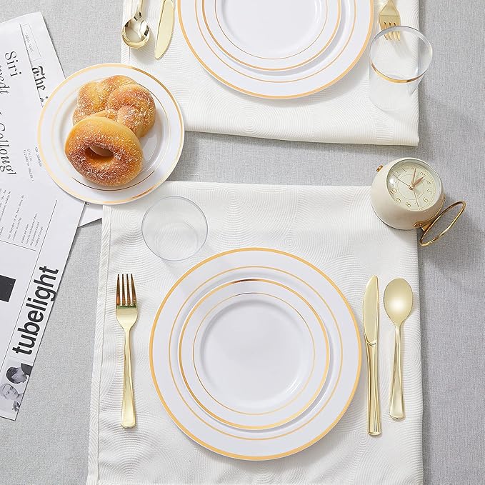 - DISPOSABLE & EASY TO CLEAN: Disposable and reusable, free yourself and your family! Toss these gold plastic silverware after party for maximum convenience, or wash by hand for the next time usage. Tip: Not recommended for microwave oven or dishwasher