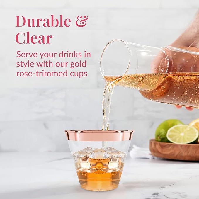 - Rose Gold Cups Disposable: Add elegance to any event with rose gold cups disposable, perfect for weddings, parties, and celebrations. These 9 oz cups are both stylish and convenient for any occasion