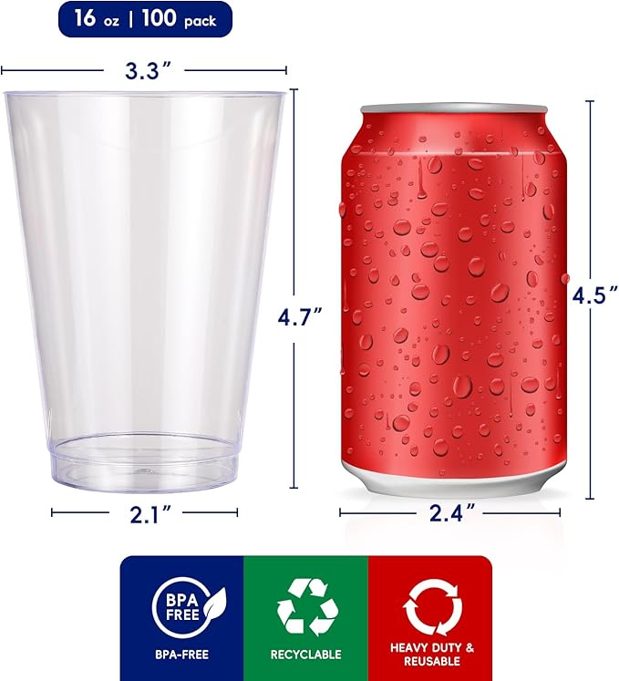 - Convenient Lifestyle: The one-off design of these 16 oz disposable plastic cups makes it easy to clean up after a busy dinner service. It is the solution for elegance and convenient dining in any venue