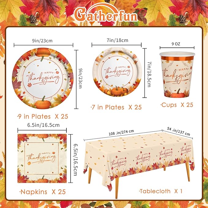 Thanksgiving Plates and Napkins Gatherfun Maple Leaves Disposable Paper Plates Napkins Cups plastic Tablecloth for Thanksgiving Dinner Party Decorations Serve 25