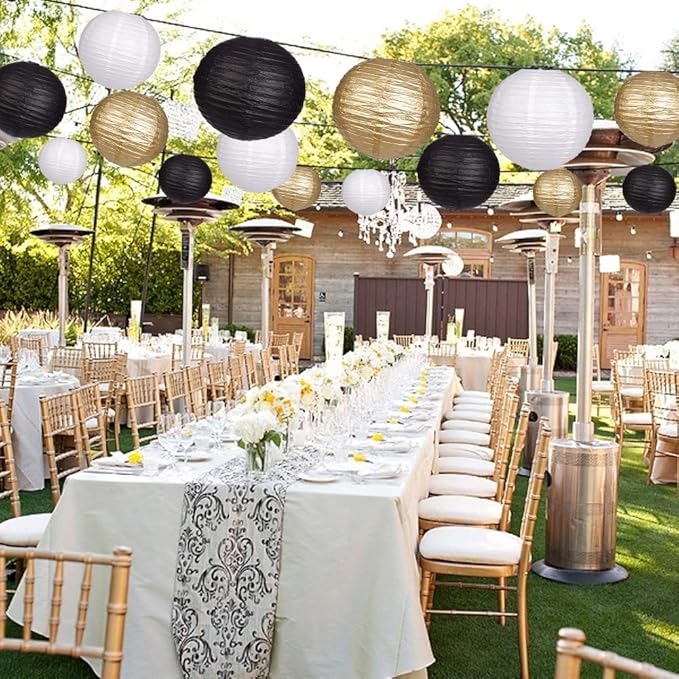 - PERFECT DECORATION- Paper lanterns are suitable for black and gold party decorations, graduation party decorations, bachelorette party decorations, masquerade party decorations, retirement party decorations also suitable for events such as black and gold birthday decorations, bridal shower decorations, new years decorations and office party, paper lanterns decorative indoor outdoor, courtyard, spring garden party decorations and other black gold theme party.