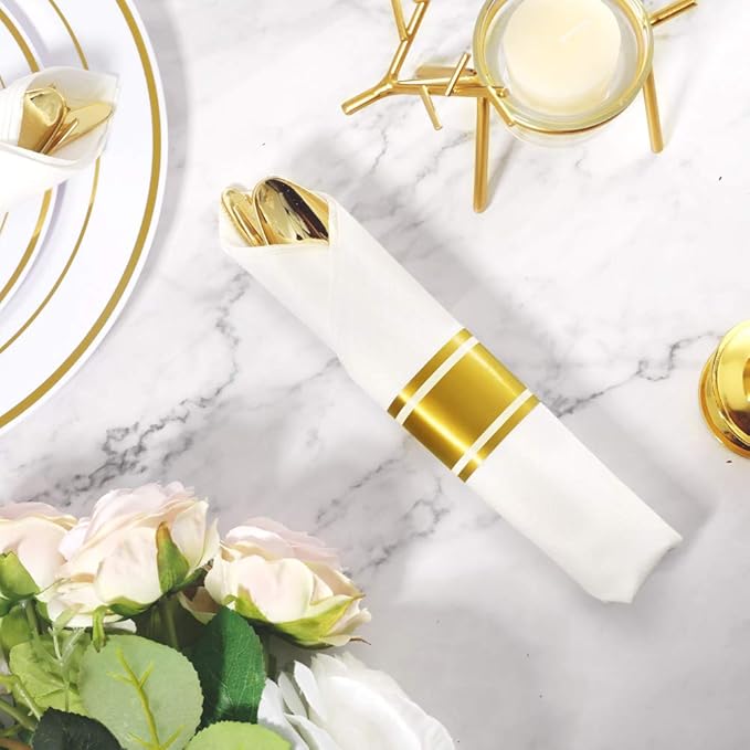 - Included Components : 30 gold forks, 30 gold knives, 30 gold spoons, 30 napkins