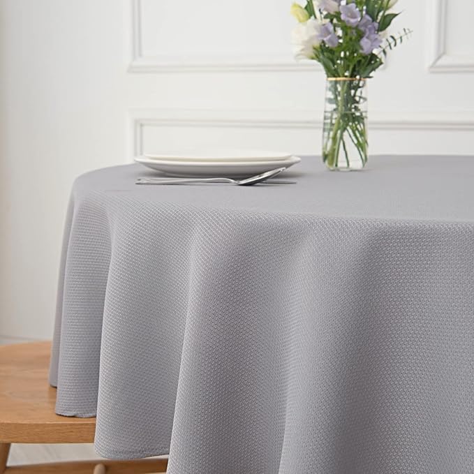 maxmill Round Textured Tablecloth Spill-Proof Wrinkle Free Soft Jacquard Table Cloth for Circular Table Cover, for Dining Room Buffet Banquet Parties Holiday Dinner, 70 Inch Light Grey