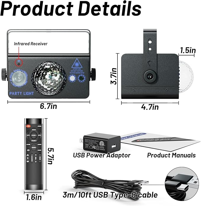 - Convenient control: Using the remote control, you can control the opening and closing of the disco ball and stage lights, also can work with two lights. When it's working, the pattern is clear and beautiful, adding more fun to your party.