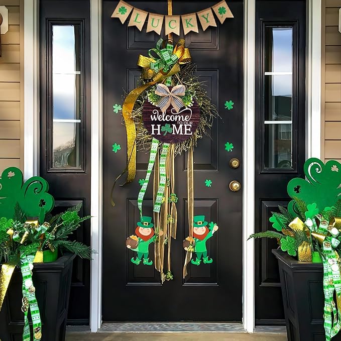 - Awesome Decoration for Front Door: Fitted with sturdy burlap rope and classic artificial greenery,easy to use hanging on for decorations on front door or garden gate,or for festivals like Easter Day,St.Patrick’s Days,adding a warm and joyful festival atmosphere and express your warm welcome greetings