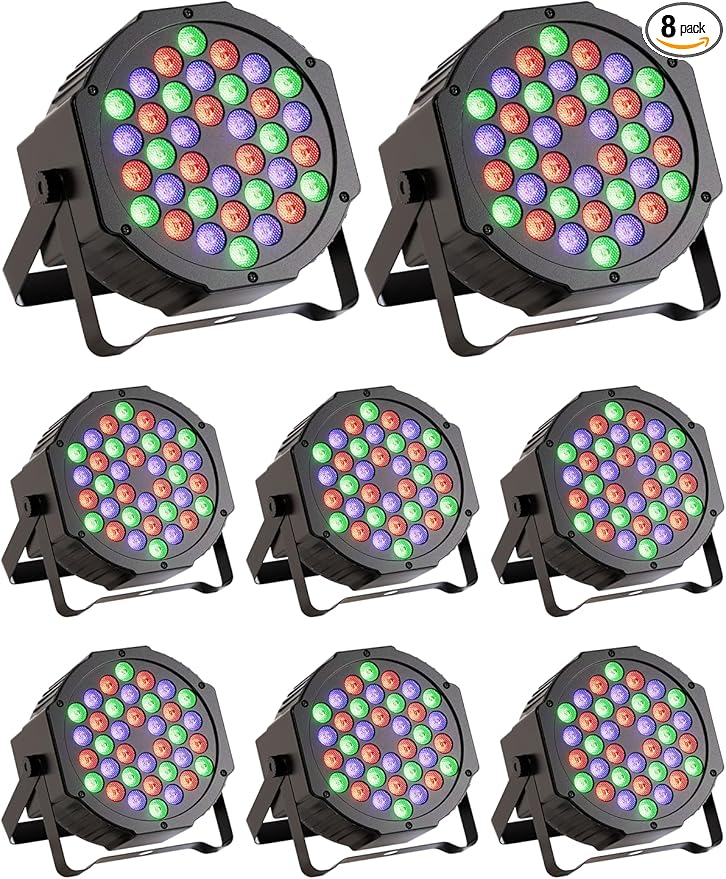 LED Par Lights 36 LED Stage Lights 7 Modes RGB DJ Lights with Sound Activated Remote and DMX Control DJ Uplighting for Birthday Party Events Wedding Christmas Stage Lighting (8 Packs)