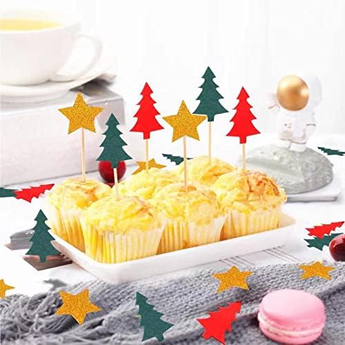 Christmas Holiday Confetti Glitter Sprinkles Red Green White Christmas Tree Star Table Confetti 300pcs,Thanksgiving, Weddings, New Years, Birthdays, Winter Party Decoration Lasting Surprise