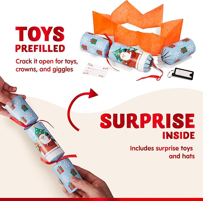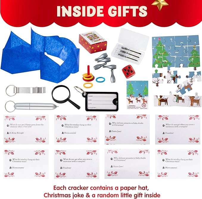 JOYIN 8 Pcs Christmas Non-Snap Party Favor, Red Blue Green Table Favor Includes Party Hat, Jokes & Gifts, Christmas Table Decorations for Holiday Dinner Traditions Party Supplies