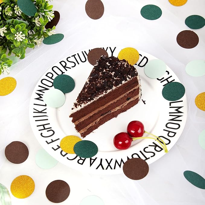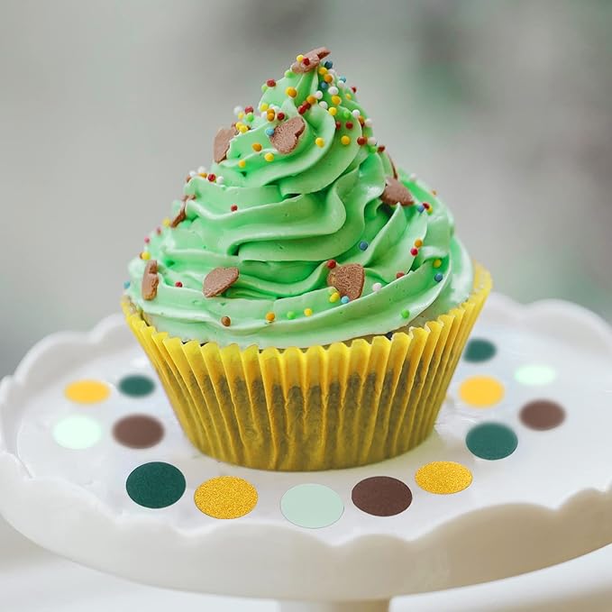 Sage-Green Gold Brown Party Decorations - 300pcs Confetti Paper Dot Table Decor for Gender Neutral Baby Shower Decoration,Bridal Shower,Birthday with Rustic,Boho,Woodland Theme