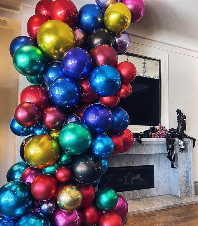 - Unique 4D Sphere Shape: high quality aluminum foil,These big round foil mylar balloons can be supported air long time lasting. And They are reusable and sturdy enough and not easy to pop. You can add these 4d balloons on arch set decorations and add a glamorous effect to your party.