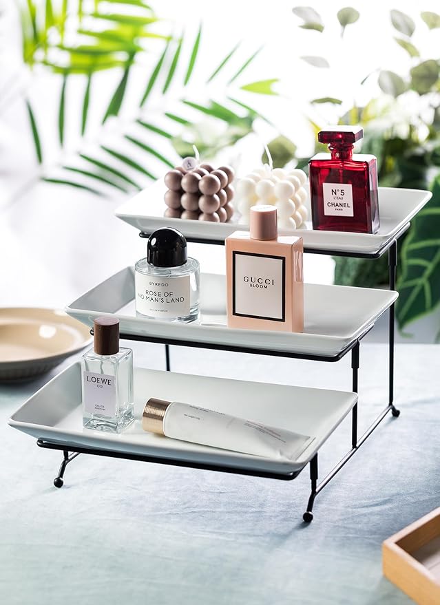 LYEOBOH Tiered Serving Stand and Platters Set, Large Tiered Tray Stand, 3 Tier Serving Tray with Collapsible Sturdier Rack, 12 Inches Tier Serving Platter for Party, Display, Dessert, and Cupcake