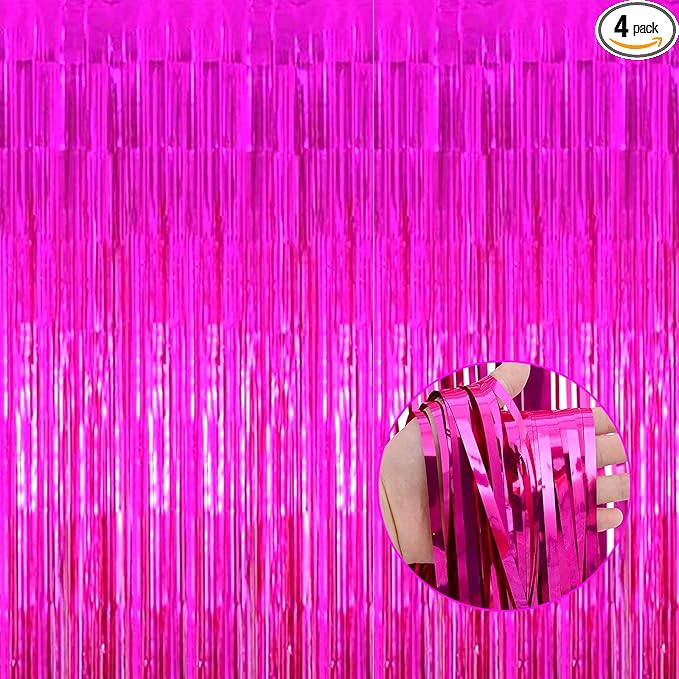 4 Pack Fuchsia Foil Fringe Curtain Backdrop,3.28Ft x 8.2Ft Metallic Tinsel Foil Fringe Streamer Curtains for Party,Photo Booth Props,Birthday,Graduation Decoration Party Supplies