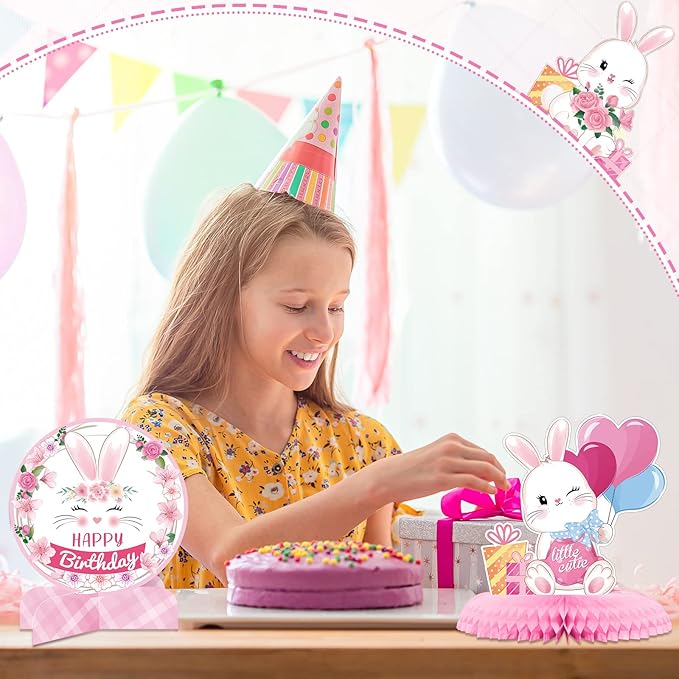 - Practical Combination Set: you will receive a total of 10 pieces of bunny rabbit birthday party supplies, including 7 pieces of bunny honeycomb centerpieces, 3 pieces of 3D rabbit centerpieces, sufficient in quantity and complete in combination to meet your party decoration needs, you can also share with your friends and family