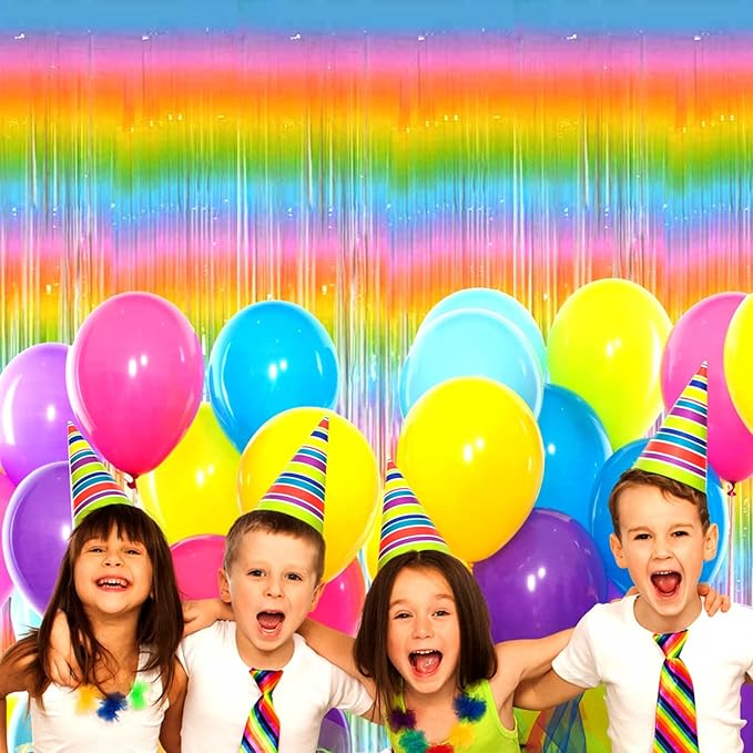 4 Pack Macaron Rainbow Foil Fringe Curtain Backdrop, 3.28Ft x 8.2Ft Metallic Tinsel Foil Fringe Streamer Curtains for Photo Booth, Birthday, Wedding, New Year’s, Easter Decorations Party Supplies