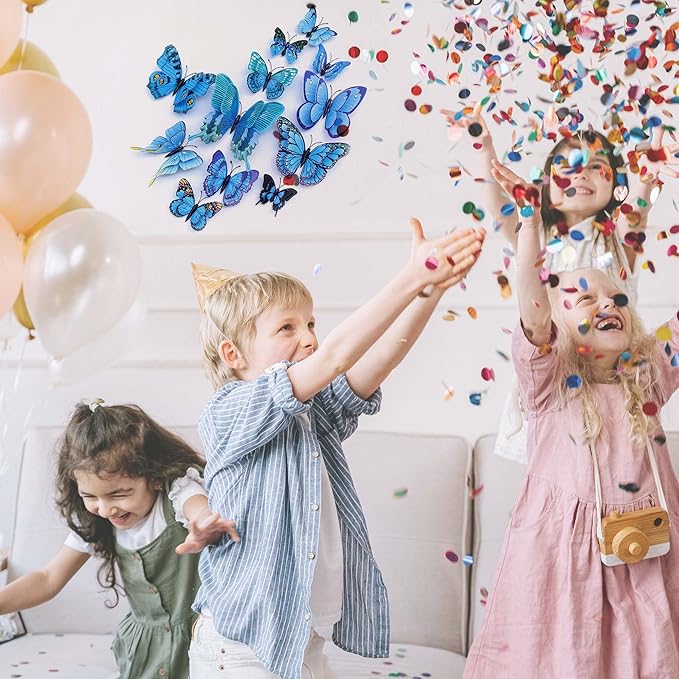 Butterfly Wall Decor 24/48 PCS, 3D Butterflies Stickers for Party Decorations with Magnets(Blue, 48)