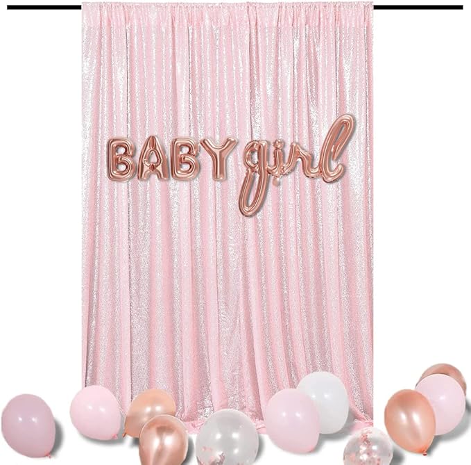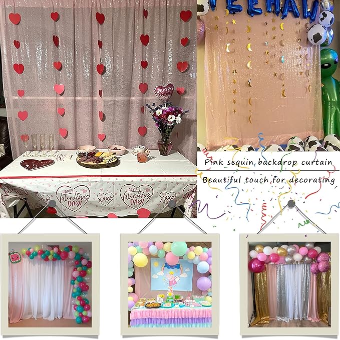 - [Package Include] 1 panel pink sequin backdrop curtain, the size of glam photo background drape is approximately 10FTx10FT / 120x120 inches / 304.8x304.8 cm, with a 4-inch / 10cm rod pocket on the top for easy hanging. PLEASE NOTE the size in the first picture of this sequin backdrop is 8ftx8ft.