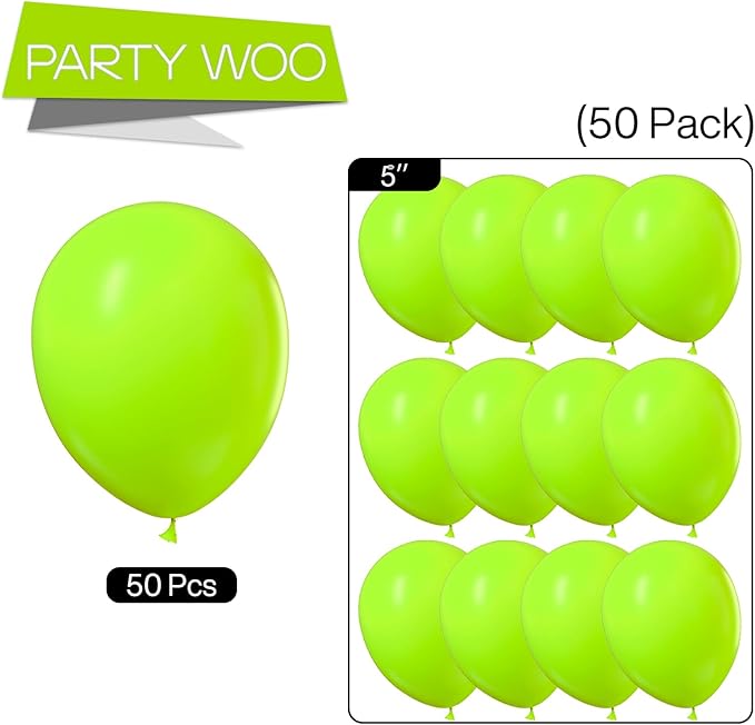 PartyWoo Lime Green Balloons 50 pcs 5 Inch Small Mini Neon Yellowish Light Green Latex Balloons for Graduation Halloween Safari Summer Weddings Baby Showers Birthday Party Decorations Green-Y6