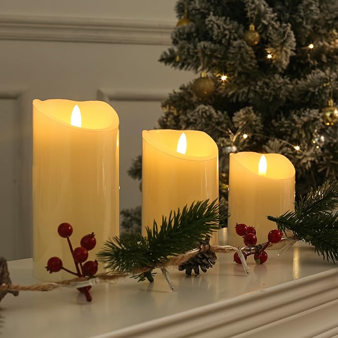 - 🕯️【Safety First】 No smoke, no risk of fire, no messy dripping wax! With this flameless candles, you don't have to worry about forgetting to blow out the candles, which is obviously much Safer to Use Around Children and Pets. These flameless pillar candles are also eco-friendly and will cause no damage to your furnitures because of no annoying candle drips! Hands free!