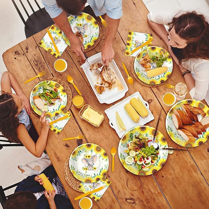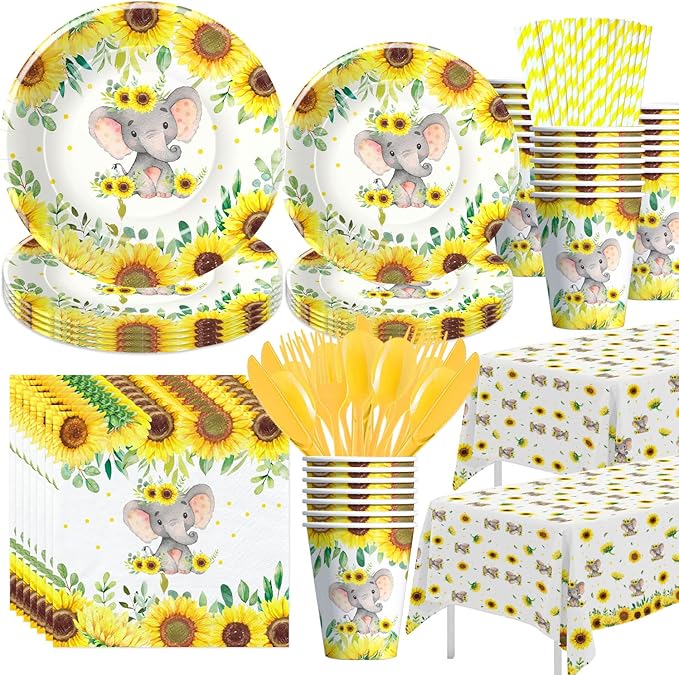 - 【Elephant Sunflower Design】Our baby elephant birthday party tableware set is designed with the pattern of cute elephant and sunflowers elements which will bring a vivid and bright feeling to your party. Makes you and your kids enjoy unforgettable birthday memories
