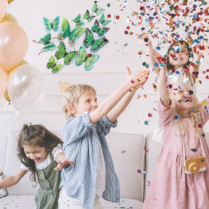 Butterfly Wall Decor 24/48 PCS, 3D Butterflies Stickers for Party Decorations with Magnets (Green, 24)