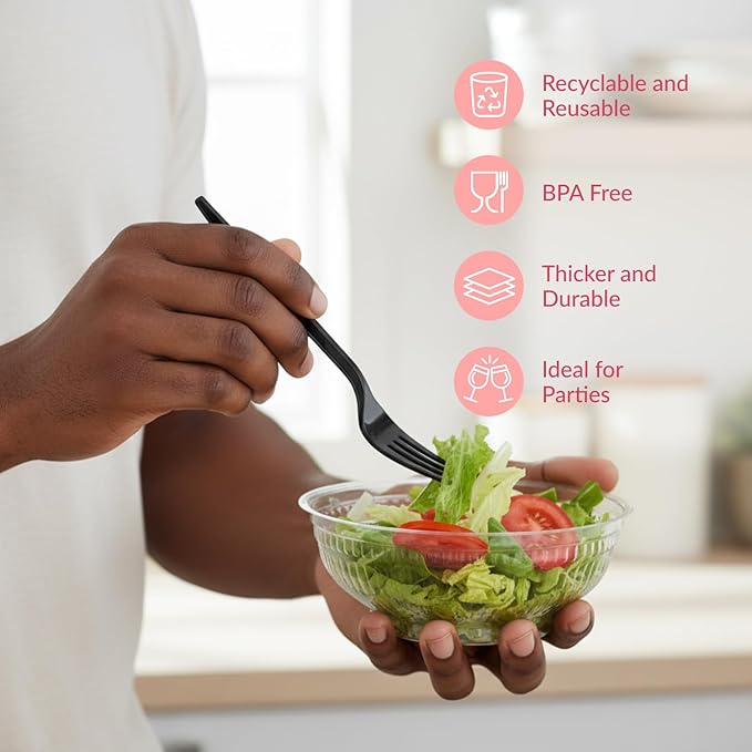 - Durable and Sturdy Build: Crafted from strong, food-grade material, these black plastic forks heavy duty offer lasting performance; ideal black plastic cutlery for main courses or desserts