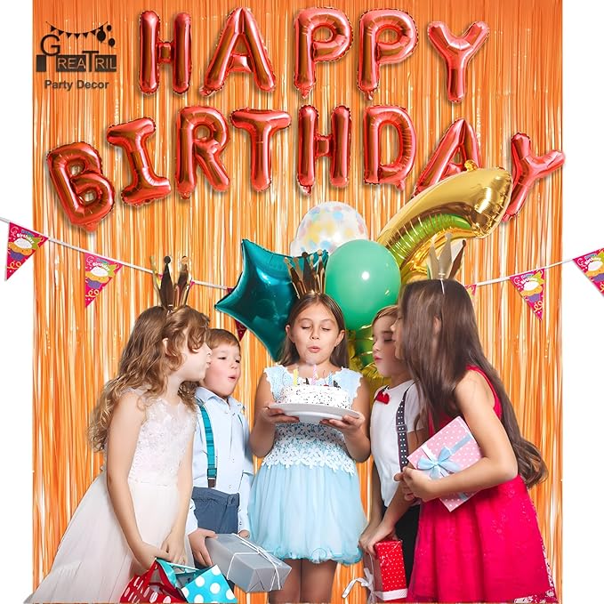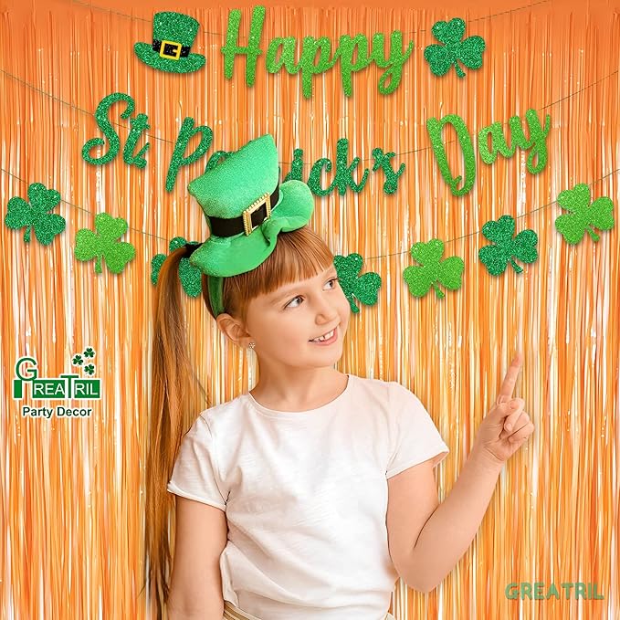 - Greatril brand 3.2ft x 8.2ft foil fringe tinsel curtain good for St. Patrick's Day, Easter, Thanksgiving day, fall theme party, halloweens, day of the dead, friendsgiving theme.