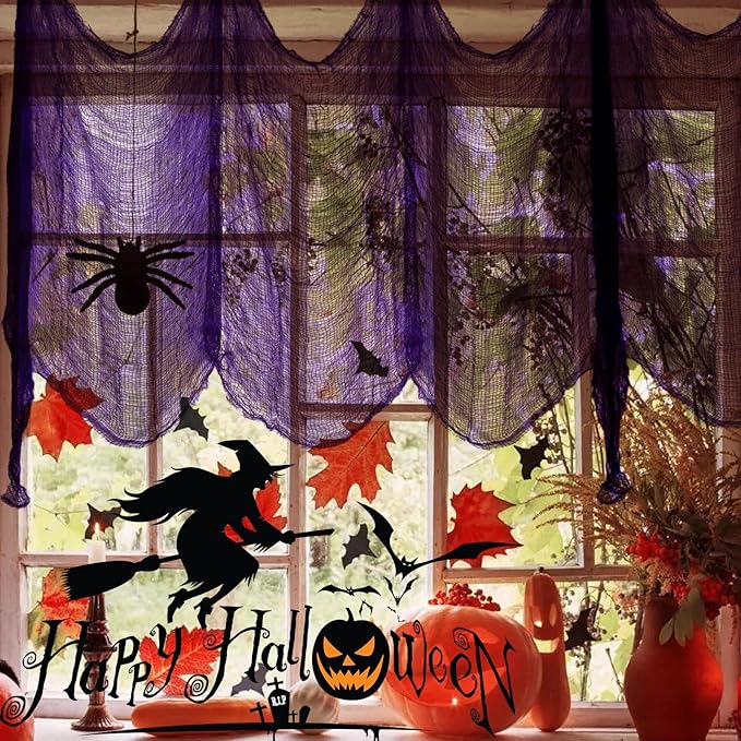 - 👻【Material】: Halloween cloth are made of polyester cotton, roving large mesh, which is durable to use and can be folded and stored for next use when not in use. And you can tear it or cut it into the size and shape you need, then hang them up to add to the scary atmosphere.