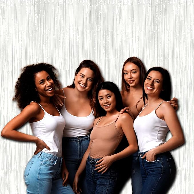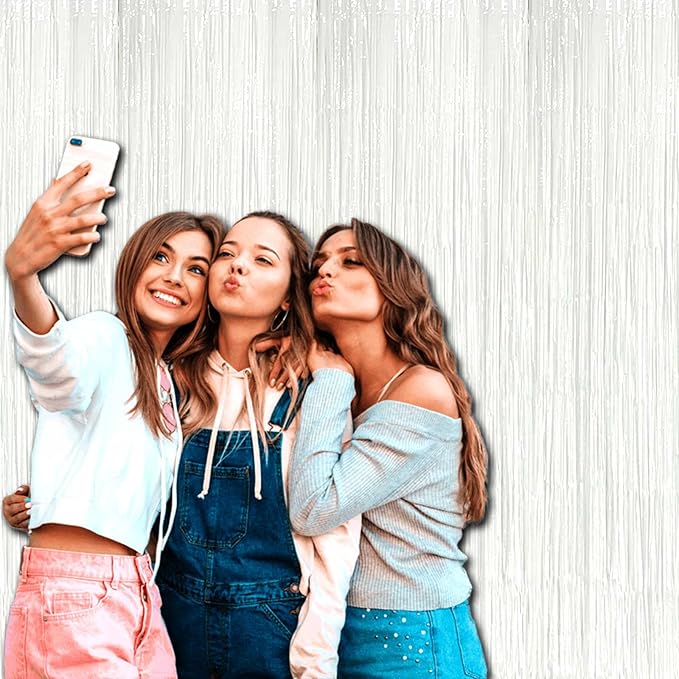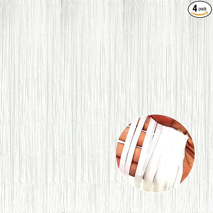 4 Pack Macaron White Foil Fringe Curtain Backdrop, 3.28Ft x 8.2Ft Foil Fringe Streamers Curtains for Party, Photo Booth Props, Birthday, 2022 Graduation Decor Supplies, One Size