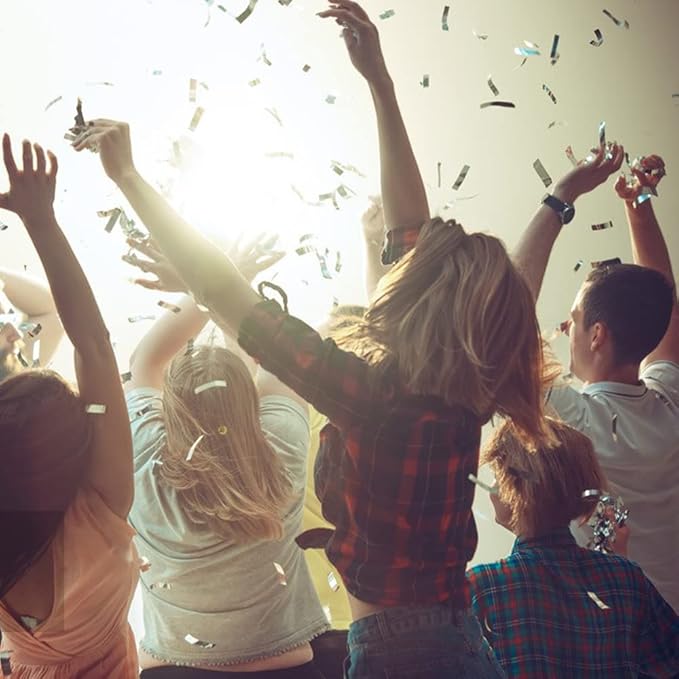 - 【SHINY THROWING CONFETTI】You can throw metallic confetti into the air, and their smooth surface will capture and reflect light, making them very shiny. A lot of metallic confetti can be a good festive atmosphere.