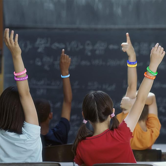 QEERBSIN Motivational Quote Bracelets- 20 Pcs Silicone Bracelets bulk Inspirational Wristbands-Stretch Unisex Wristbands for Student Graduation Gift from Teacher for Kids Children