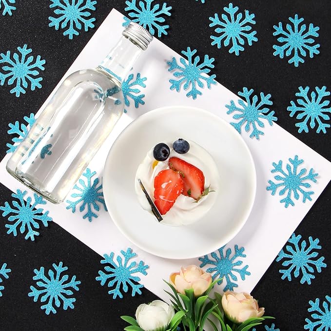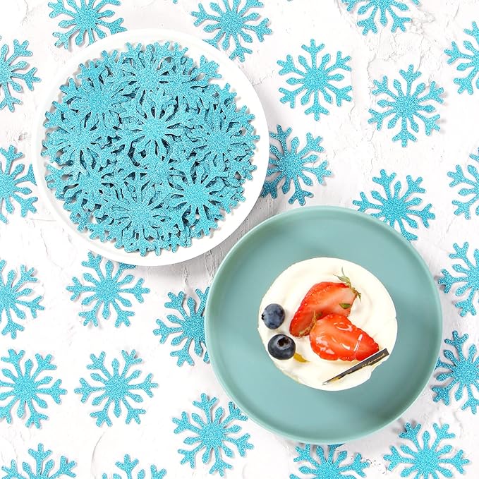 Snowflake Teal-Blue Party-Decorations Frozen Confetti - 100pcs Glitter Paper decor Christmas Table Confetti,Winter Wonderland Birthday Party Supplies New Year Decor Lasting Surprise