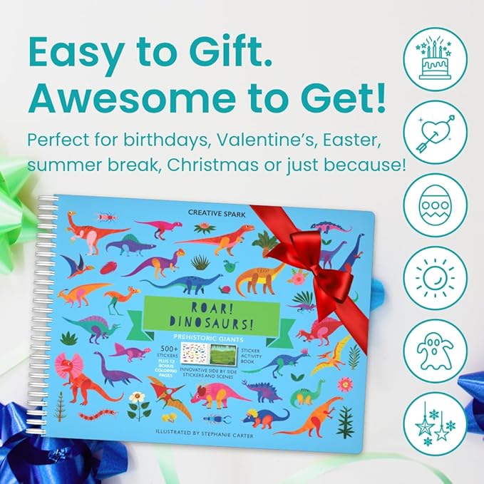 - Gifts for kids: The dinosaur-loving child in your life will jump for joy when opening this gift! Grandparents love our Mom and Dad-approved learning activity books for boys and girls and all the entertainment they bring. Dinosaur stickers are great rainy day activities and make the perfect gifts for birthdays, holidays, Montessori classrooms, and for make-believe enthusiasts ages 4-8.