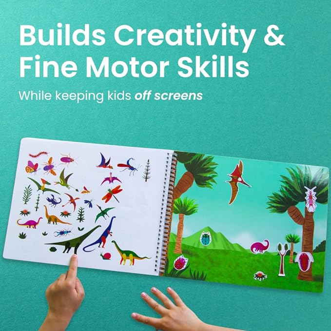 - On the go fun: Keep kids busy while traveling with independent, quiet, screen-free fun. Our lay-flat sticker activity books make the best plane travel essentials for toddlers, create the perfect mess-free crafts for car road trips with little ones, and keep kids entertained at restaurants. Leave the tablet at home and let their imaginations soar on your next family adventure.