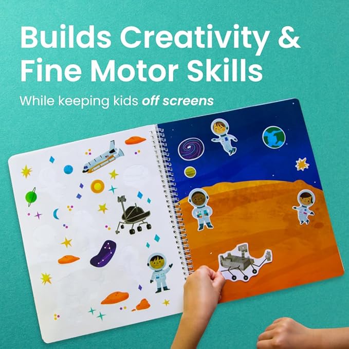 - On the go fun: Keep kids busy while traveling with independent, quiet, screen-free fun. Our lay-flat sticker activity books make the best plane travel essentials for toddlers, create the perfect mess-free crafts for car road trips with little ones, and keep kids entertained at restaurants. Leave the tablet at home and let their imaginations soar on your next family adventure.