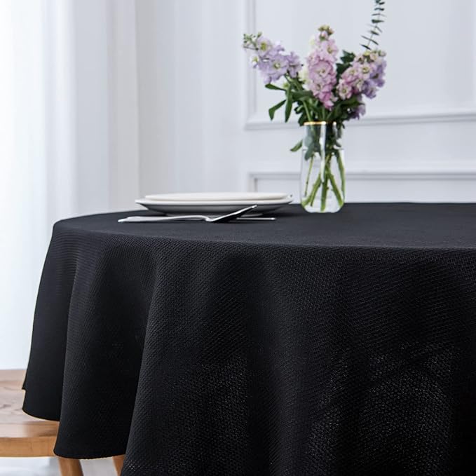 maxmill Round Textured Tablecloth Spill-Proof Wrinkle Free Soft Jacquard Table Cloth for Circular Table Cover, for Dining Room Buffet Banquet Parties Holiday Dinner, 70 Inch Black