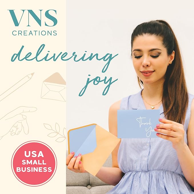 - SIMPLE & ELEGANT SEALING – Each pack of thank you cards comes with envelopes lined with a matching light blue interior, and a moisture-seal adhesive, plus a stylish peel-and-seal sticker for a secure and polished finish. Perfect for personal, professional use, and small businesses.