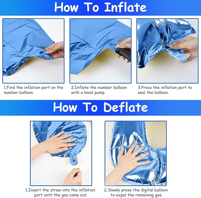 - π Repeated Use π - The number balloons set contains a straw that can be used to deflate the foil balloon, simply insert the straw into the valve and press gently until the gas is completely expelled. After use, it can be folded and stored for reuse.