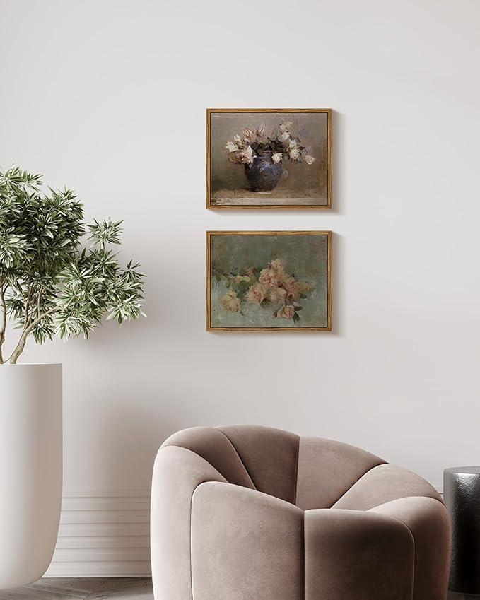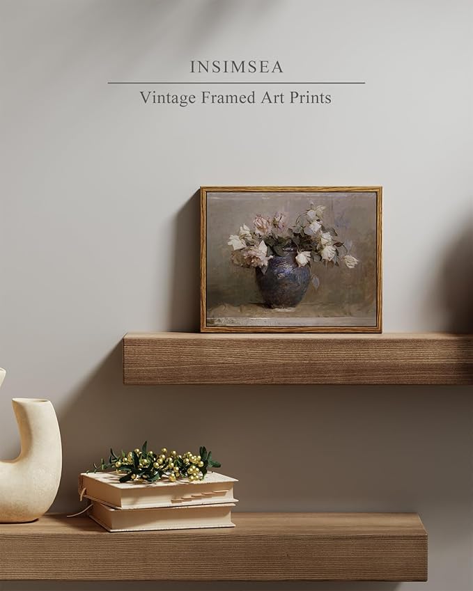 InSimSea Framed Canvas Print , Roses in Vase Classical Oil Paintings for Wall Decorations Canvas wall art for Bedroom Living Room Bathroom Decor ,Farmhouse Decor 8x10in