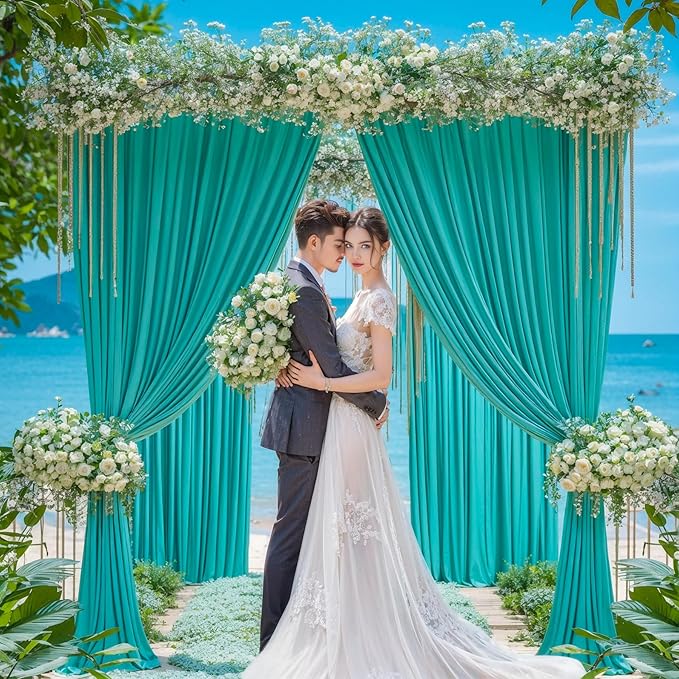 - ❤10ft Fabric Drape Turquoise Backdrop Curtain Wide Compatibility: Polyester photo drape turquoise backdrop curtain can be used for parties, wedding, baby shower, birthday party, gender reveal, photography, bridal shower, princess party, engagement party, baptism, candy buffets, dessert table, sweet table, background, photo booths, photoshoot, ceremony, anniversary, graduation, home decorations, holiday party, stage curtain or just to mask unsightly areas