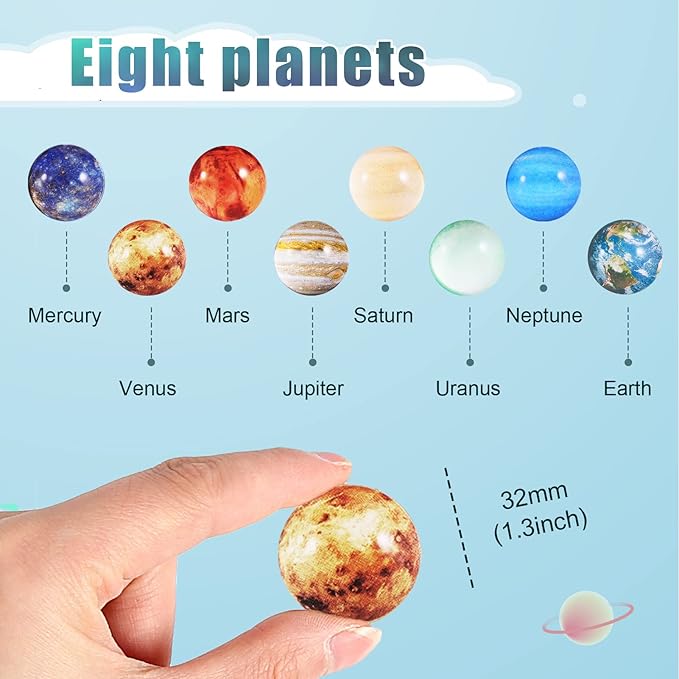 - Solar System Planets Theme: Our 24pcs outer space bouncy balls set contains 8 styles, Includes Mercury, Venus, Mars, Saturn, Jupiter, Uranus, Neptune, Earth. Each style is 3 pieces, very suitable for Solar System Planets-themed parties and bag filling