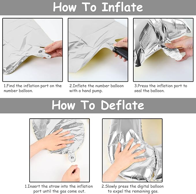 - π Repeated Use π - The silver 0th birthday balloons set contains a straw that can be used to deflate the foil balloon, simply insert the straw into the valve and press gently until the gas is completely expelled. After use, it can be folded and stored for reuse.