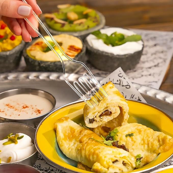 - WASHABLE AND REUSABLE - Clear forks disposable are sturdy enough that you could wash and reuse after use that they can last long time. Our disposable kitchen utensils have strong and safety teeth to firmly grasp the food, and no sharp or scratches to hurt your family.
