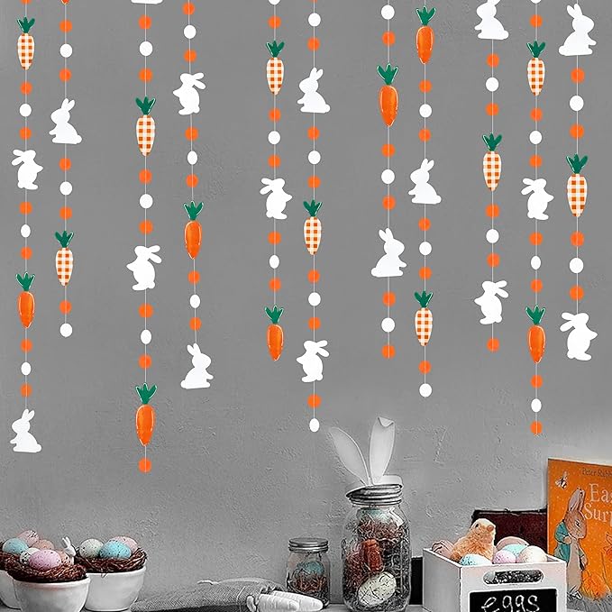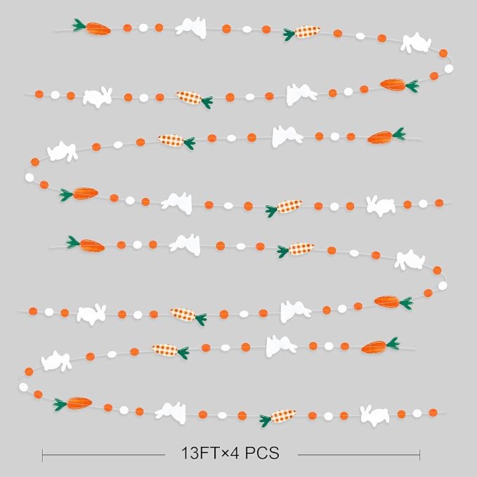 - PACKAGE CONTAINS – 4 packs of carrot bunny easter garland,each string is 13 feet/ 4 meters.Total is 52 Ft/16 meters.