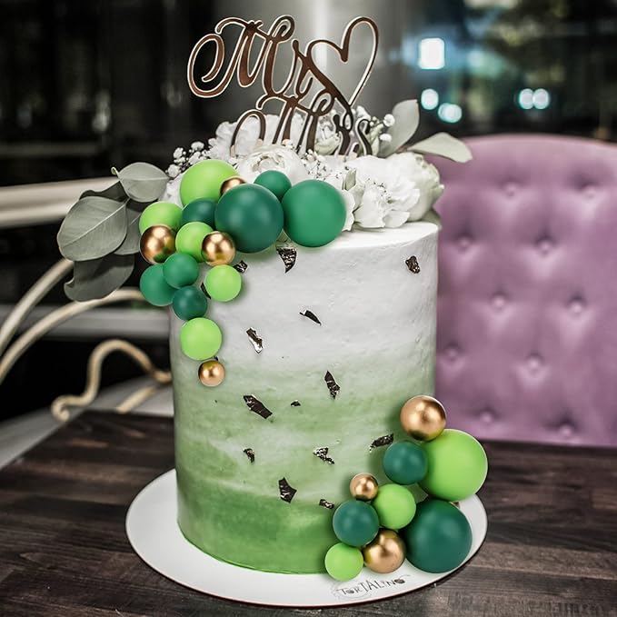 108 Pcs Balls Cake Topper DIY Cupcake Insert Foam Balloons for Cake Baking Wedding Anniversary Birthday Decoration(Assorted Green, Gold,Multi Sizes)